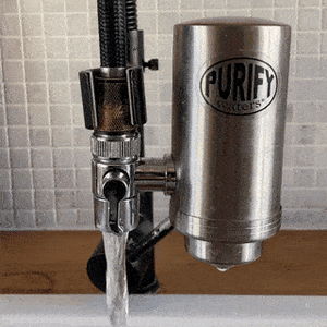 La boitier de filtration d'eau du robinet Purify est en acier brossé, qui garantie qu'il n'y aura pas de plastiques dans votre eau.